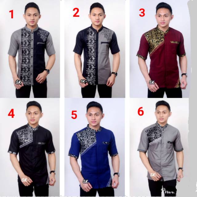 Setelan baju kemeja pria batik lengan panjang lengan pendek katun halus murah casual formal hitam putih muslim koko atasan pria dewasa batik solo new.